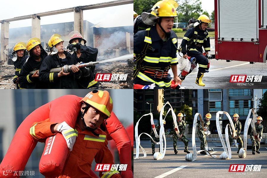 在气温直逼40°C的天气下,湘潭市消防支队的消防官兵们每日也坚持进行着“雷打不动”的训练。一半是训练场,一半是火场,这是消防官兵的工作常态。穿上防火服、防火鞋,消防官兵迅速从消防车里拿出水带,熟练地进行操作。即使烈日当空,他们也会尽力把每一项训练做到最好。因为他们曾说过:“作为一名消防官兵,只有平时严格训练,练就一身过硬本领,才能真正做到‘赴汤蹈火为人民’,才对得起这身消防服和身后的国徽!”