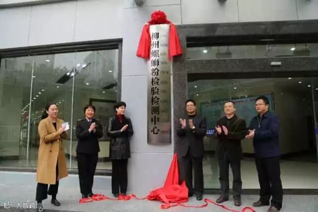 图为柳州螺蛳粉检验检测中心举行揭牌仪式,柳州市委副书记梁旭辉(右三)、副市长卢柳屏(左三)等领导出席。