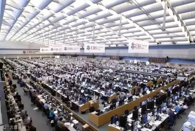 (8年前和现在的瑞银集团的交易大厅对比)