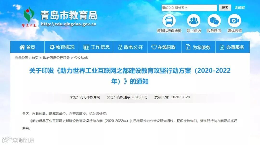 青岛市教育局出台《助力世界工业互联网之都建设教育攻坚行动方案(2020-2022年)》,将工业互联网和人工智能教育纳入中小学科技教育和综合实践课程体系,制定了《青岛市人工智能教育实施意见》和人工智能教育课程纲要,面向全市中小学生推广普及人工智能基础课程,三年内打造 100 所人工智能教育实验学校。
