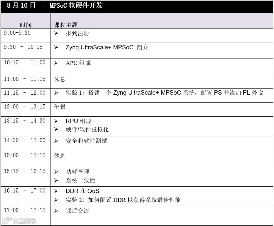 为了能让工程师尽快掌握异构多核MPSoC的特性和优势以设计更智能更灵活的系统,提高产品竞争力和加速产品上市进程,依元素科技推出为期2天的专题培训班。本培训课程主要介绍Zynq UltraScale+ MPSoC架构及其内部模块,旨在为您设计异构多核MPSoC项目提供决策,主要包括APU、RPU、PMU等模块,也将介绍PS和PL如何有效互联,如何正确进行启动和配置、如何保护系统及一致性要求等。