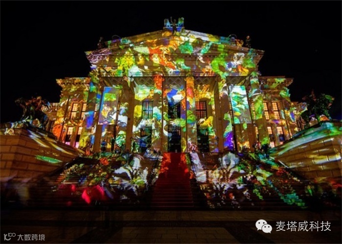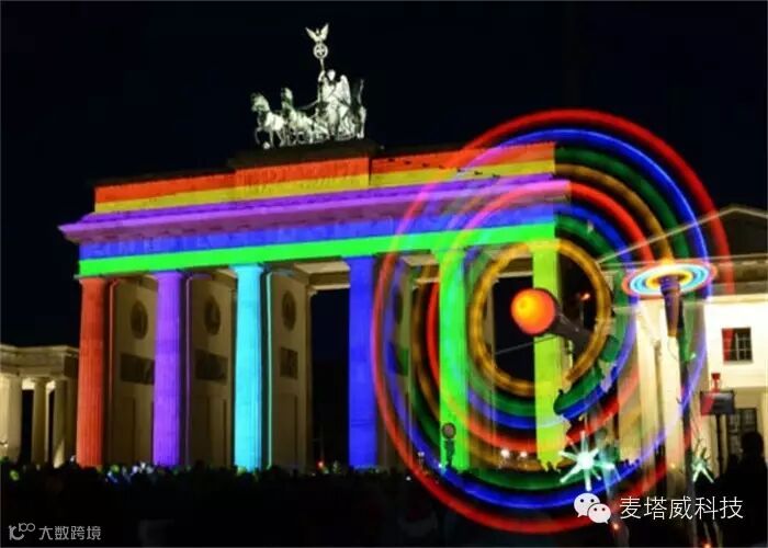 德国柏林齐聚了一群裸眼3D光影秀灯光艺术家,他们花了整整两个星期在柏林70个古迹及景点打上星光闪烁的灯光。