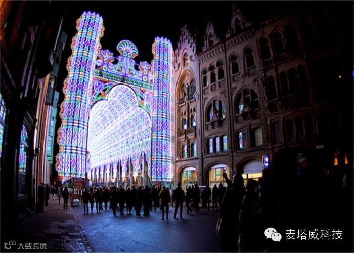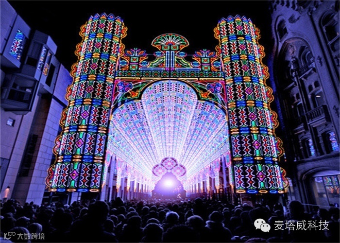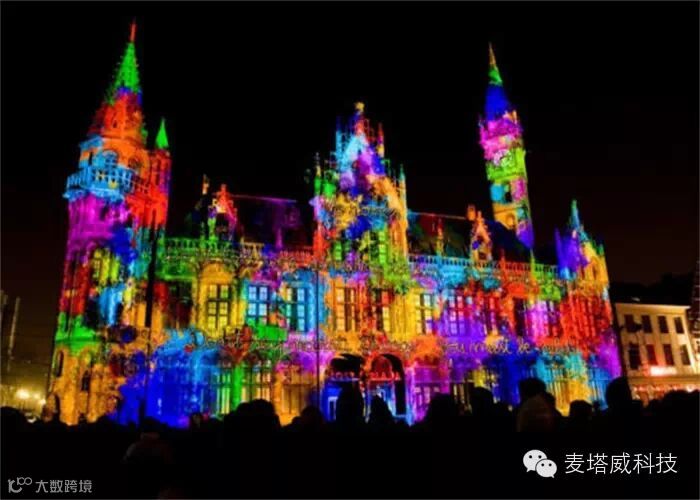 去年在比利时弗兰德斯举办的裸眼3D光影秀灯光艺术节中,5.5万个LED灯令人眼花缭乱。