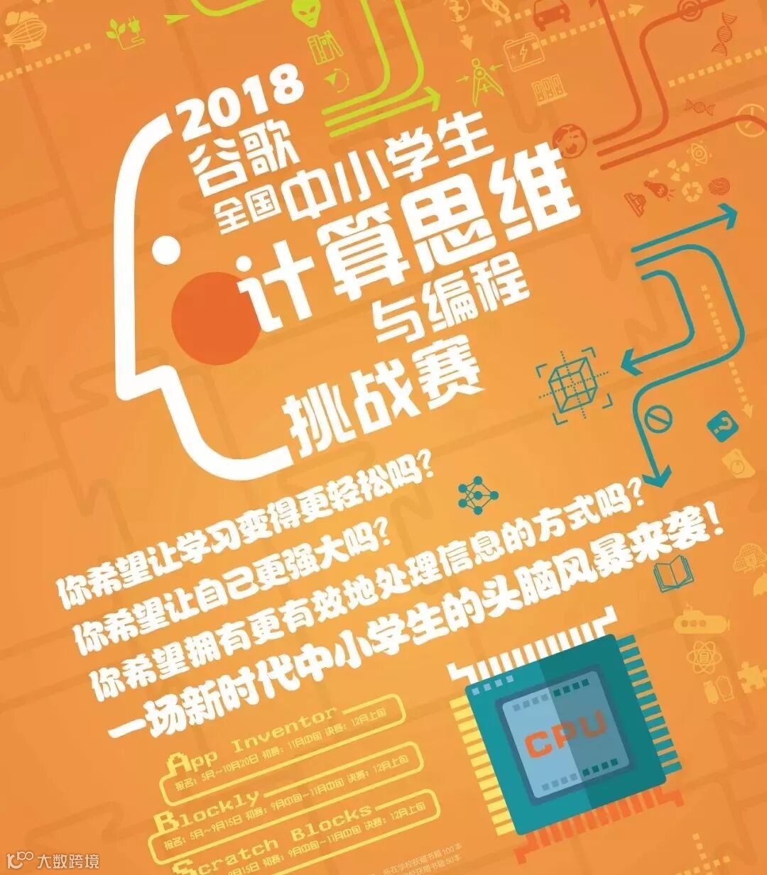大赛面向在校小学生、初中生和高中生,分为初中组(含小学)和高中组,是在 Google Blockly 开源可视化编程平台上锻炼计算思维。