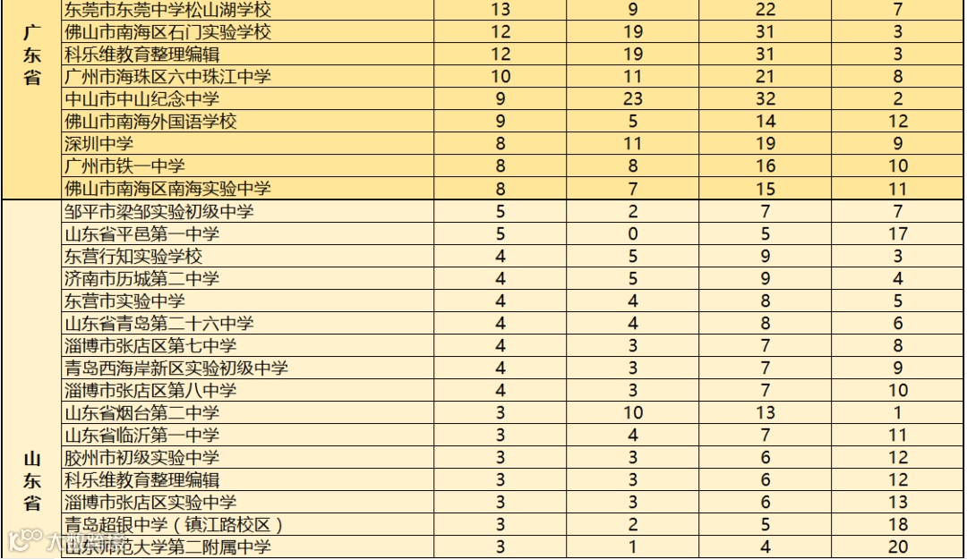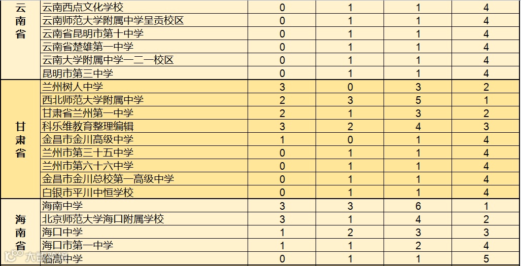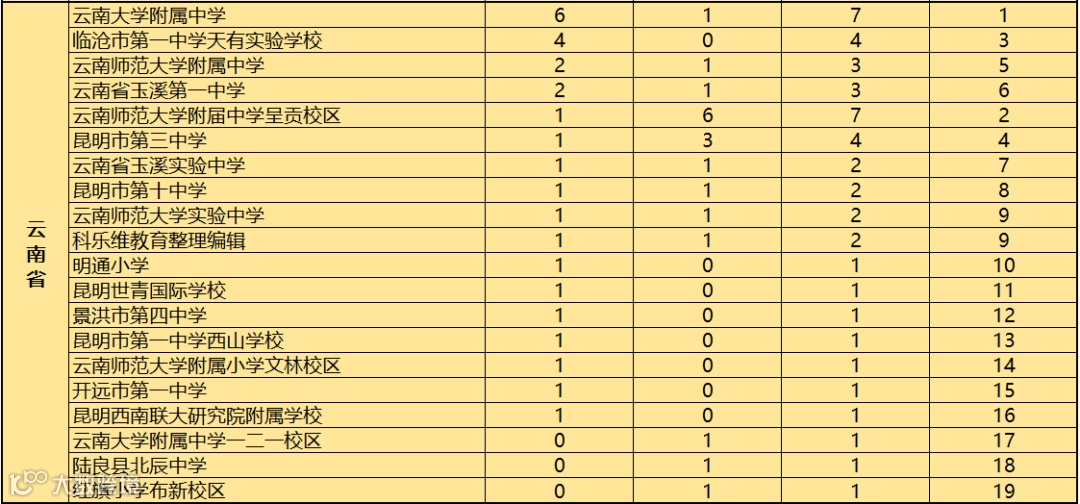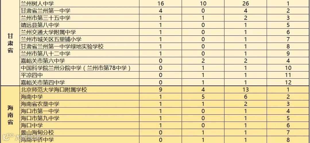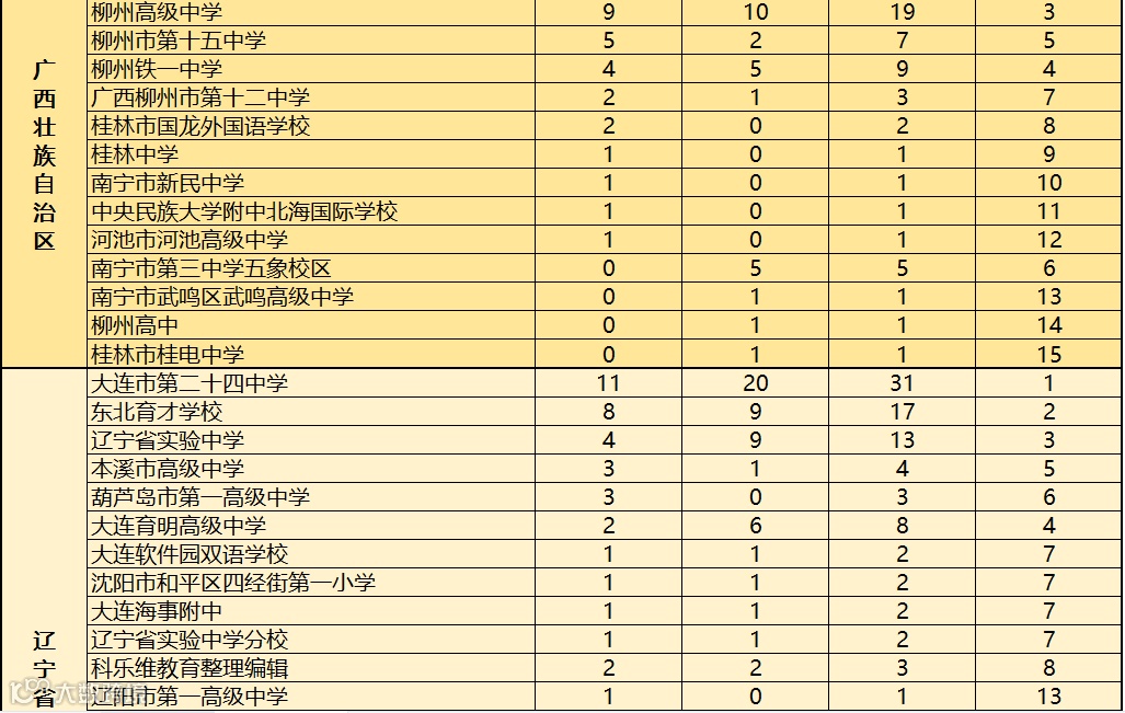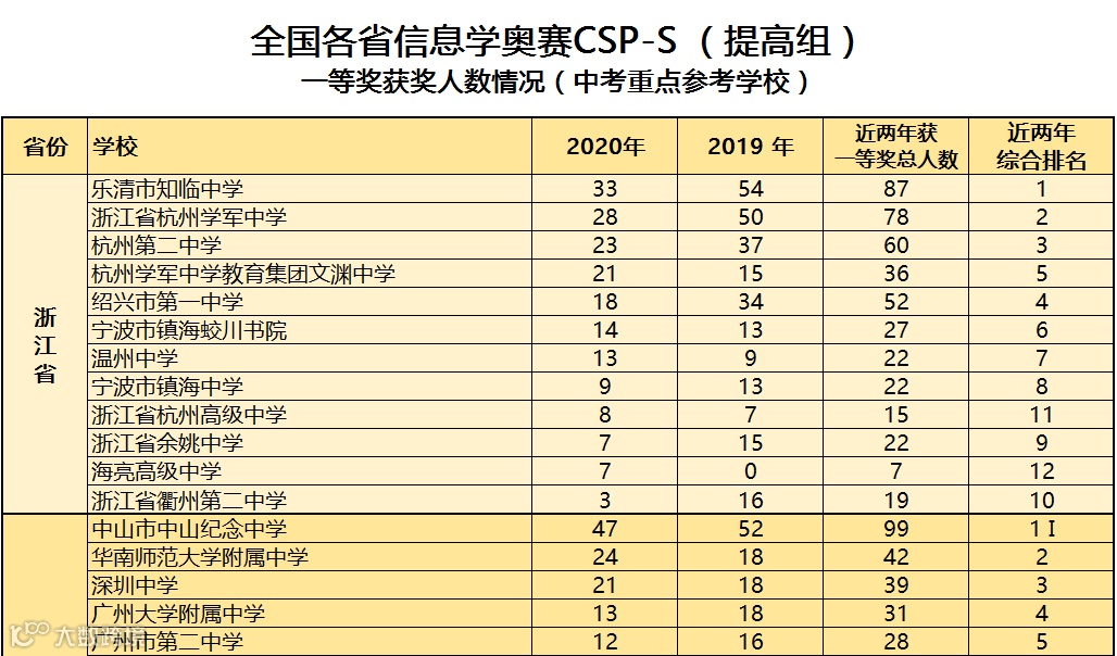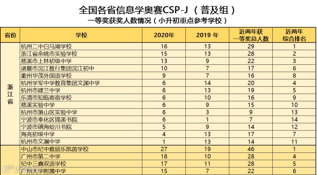 对此,科乐维教育根据近2019至2020年全国中学生信息学竞赛(CSP J/S)各省份参赛学校获得一等奖人数的情况进行综合统计,方便家长做择校参考。