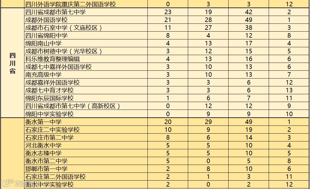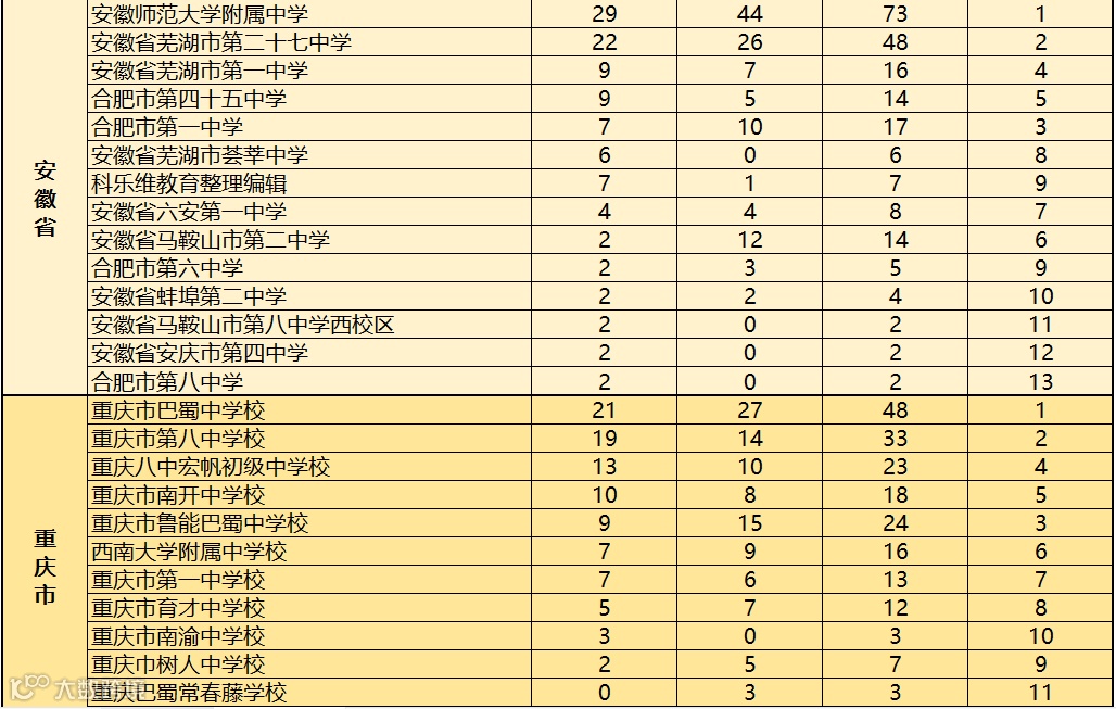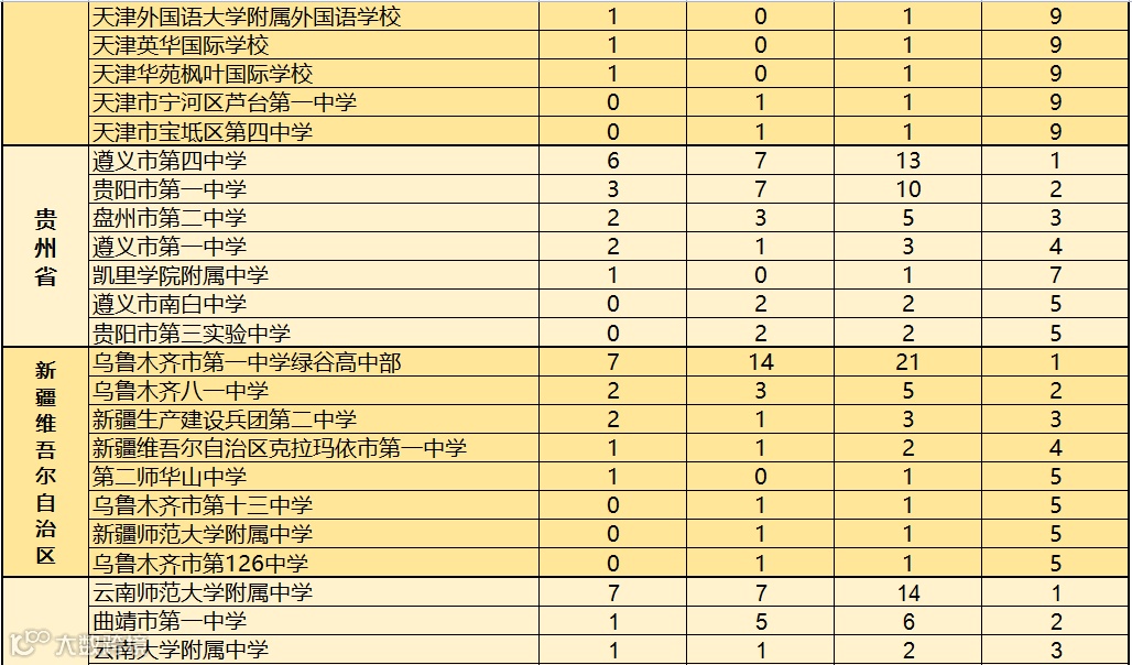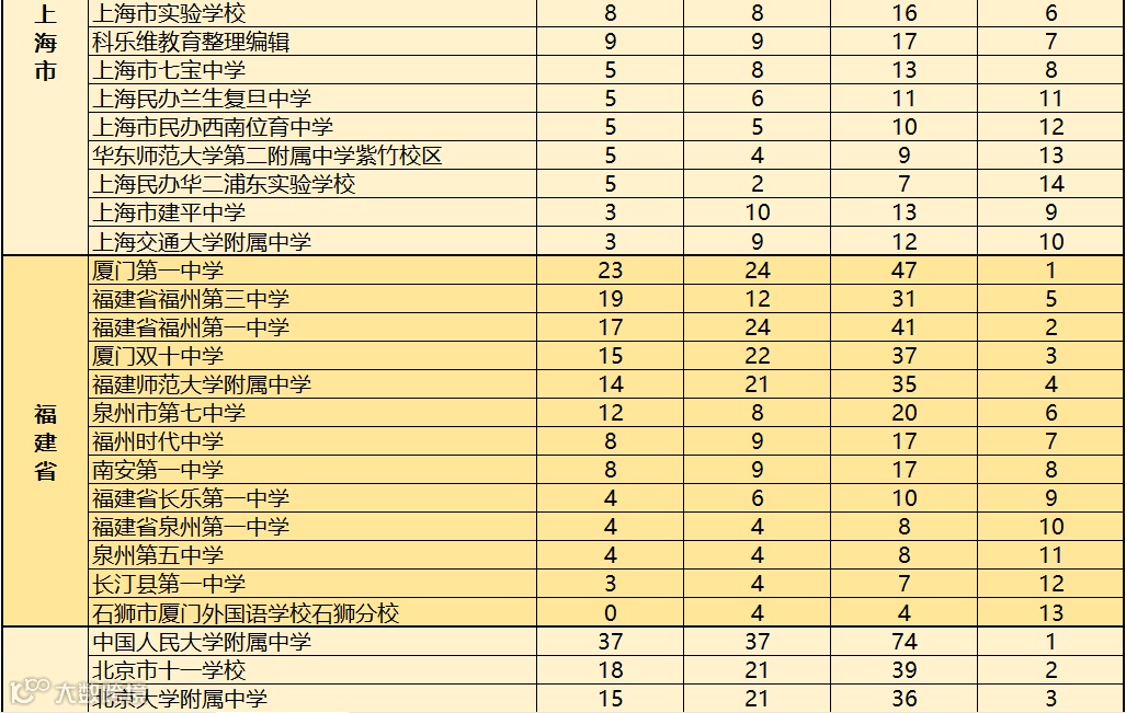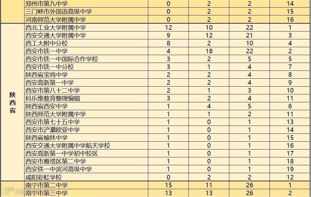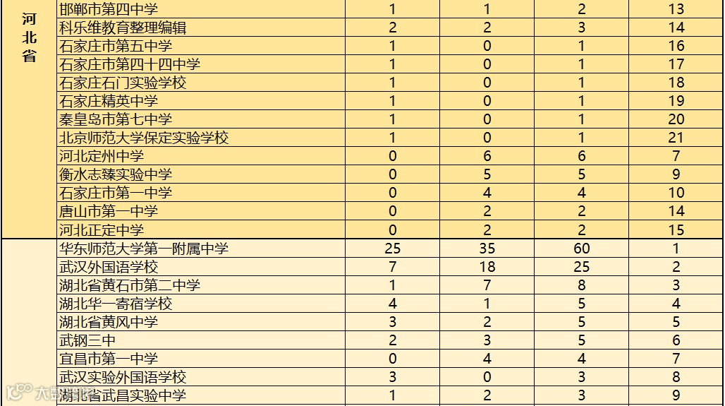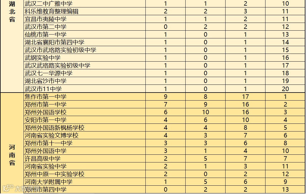 对此,科乐维教育根据近2019至2020年全国中学生信息学竞赛(CSP J/S)各省份参赛学校获得一等奖人数的情况进行综合统计,方便家长做择校参考。