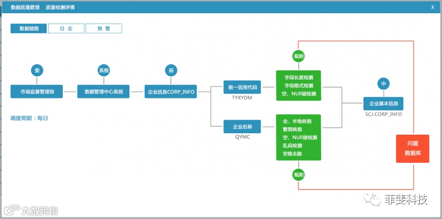 菲斐数据治理平台不仅将各单位的分散信息归集起来,解除了信息孤岛的问题,还通过一系列技术对数据进行清洗、转换,以保证信息的正确性和可靠性。同时整合数据流动、治理关系形成可视化平台,实时监控数据的异常情况、出具数据质量报告以及进行预警。最终用高质量的数据支撑分析决策。