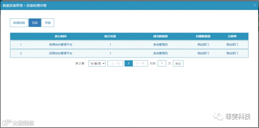 质量检测模块从资源维度对系统中的数据进行统计分析,用户可以了解每一个资源的数据链路、运行日志及预警情况。