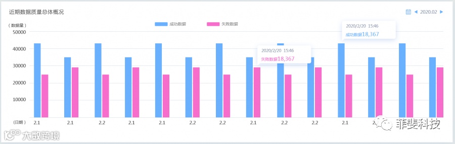 近期质量总体概况:直观的展示了系统近期运行的质量情况,每天归集成功数据量与失败数据量。