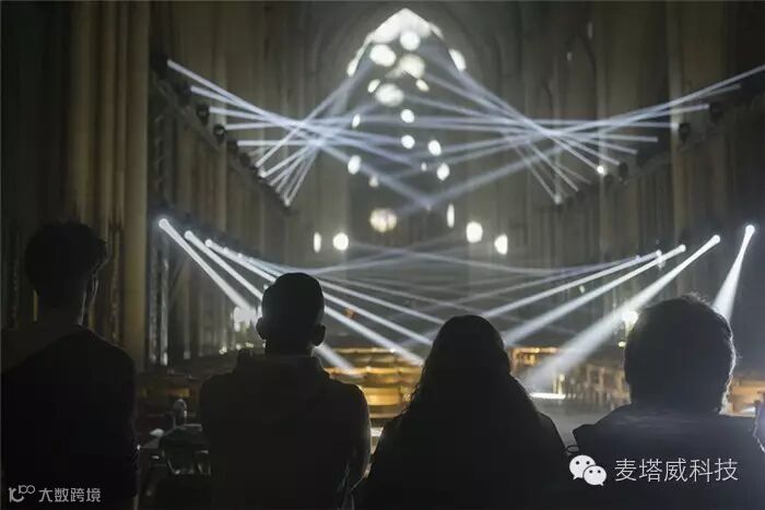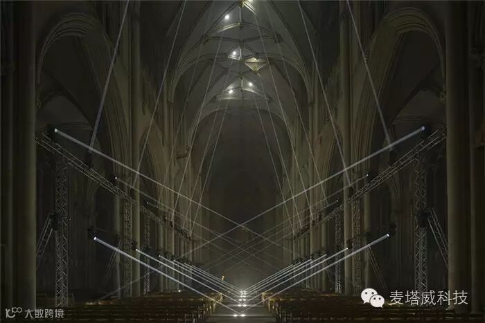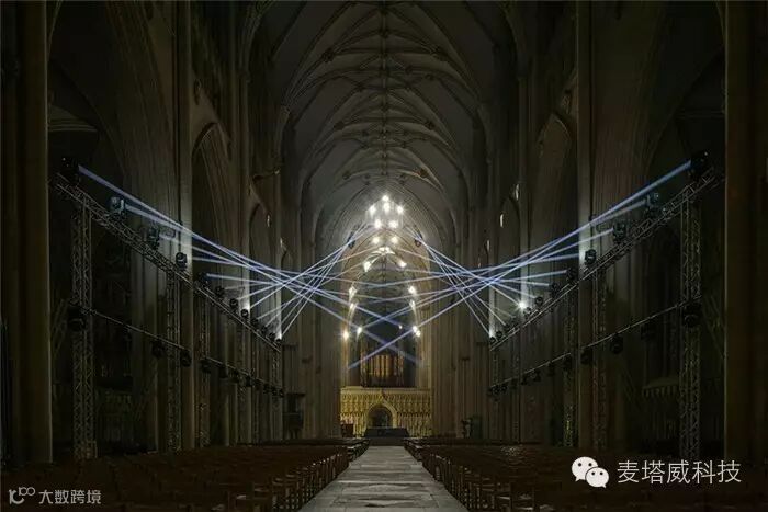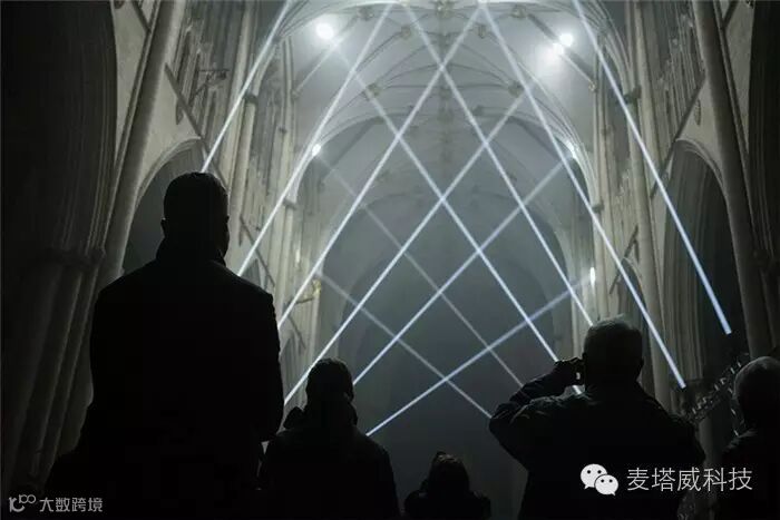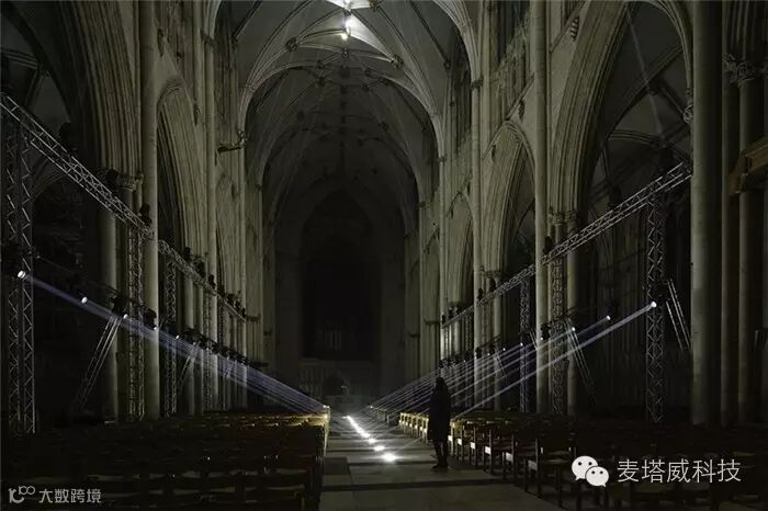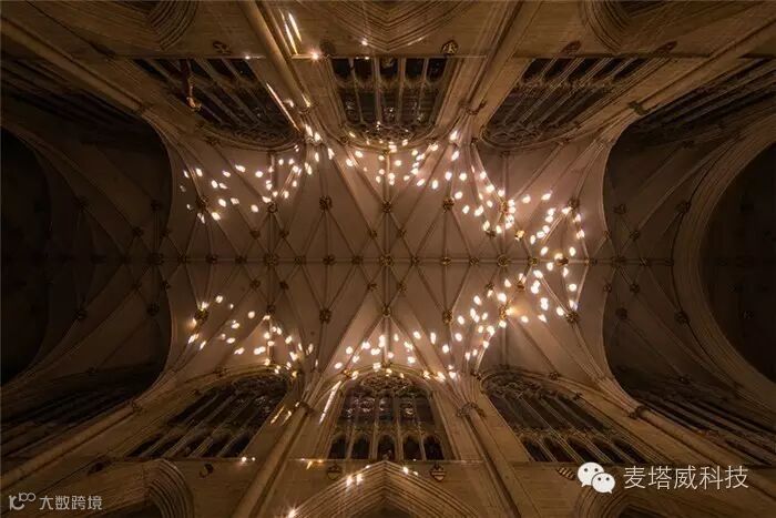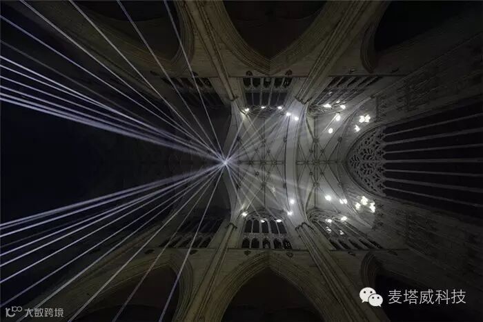 在约克明斯特大教堂中间放置着布鲁日的灯光秀装置,节日现场利用了各种形式的光媒介,邀请游客通过艺术家的想象力去探索和发现城市。