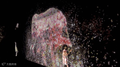 当你行走在50多米的通廊里,身边围绕着由花瓣组成的各种动物,手指触碰到的地方都将出现花谢花飞的浪漫景象。
