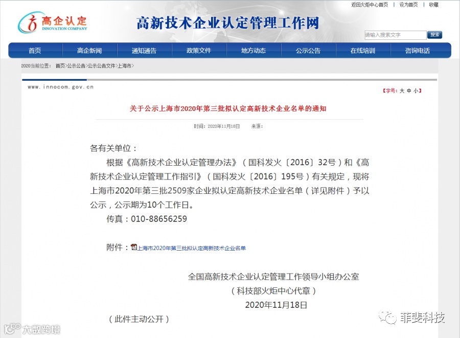 2020年11月18日,上海菲斐信息科技有限公司喜获“高新技术企业”资质认定。高新技术企业认定是对企业在核心自主知识产权、科技成果转化能力、研究开发的组织管理水平、成长性指标和人才结构等方面的综合评估和鉴定,是中国科技型企业最高的荣誉之一,也是对企业科研实力最权威的肯定。