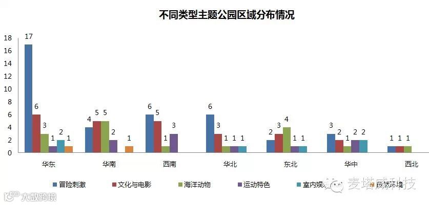 其他类型的主题公园,较为均匀的分布在全国的各个区域内,其区域分布特征不是特别明显。