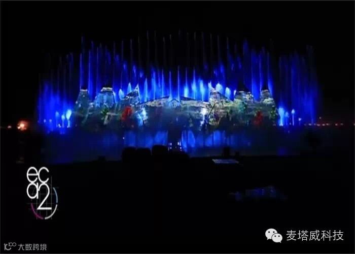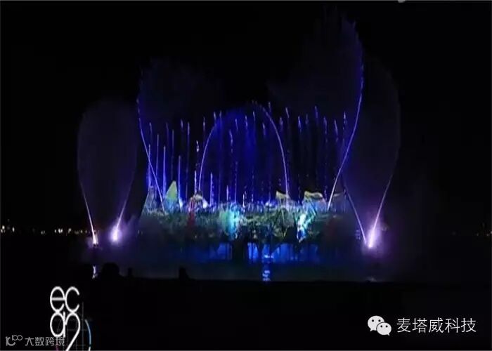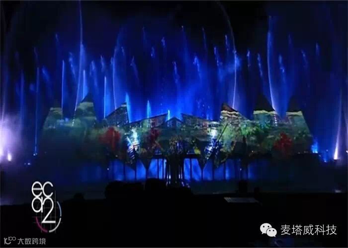 裸眼3D光影秀“时光之翼”表演的首要视觉元素便是一个形似鸟翅膀的宽50m的由三角形组成的幕布。