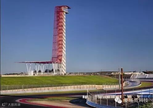 露天剧场的建筑语言与精密、活力和性能至上的赛车相辅相成,同时在视觉上与横幅、广告牌与大型平面广告互相衬托。设计师们讲究建筑结构的创新,该结构不是藏在大楼外立面的背后,而是做为该设计的一部分。场地设计的一个很突出的设计主题就是红色钢管的反复使用。钢管从头垂落到瞭望塔边上,作为露天剧场舞台的雨篷,与此同时也突出了主正面舞台。剧场衬托出了赛车和赛车运动,为两者的结构缔造了视觉体验的延续。