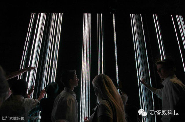 人们和加拿大艺术家Daniel iregui打造的艺术品互动。名为“控制与非控制”的灯光艺术品允许游客操纵艺术品的声音与动作