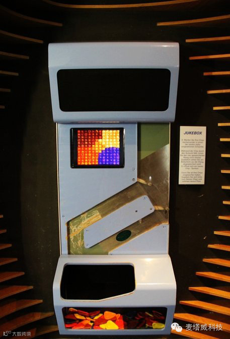 还有几台很像游戏机的机器,通过控制音符的行进方向来控制音乐是更平和还是更猛烈。