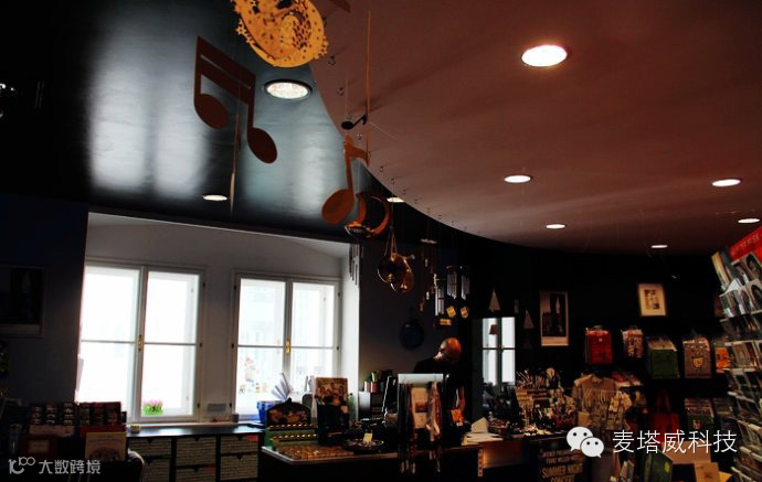 走出这个给人时空交错感觉的二层展厅,顺着楼梯就来到了三层。第三层是关于音乐家的介绍厅,入口处有免费的语音导览,有五六种语言,不过可惜还没有中文的介绍。