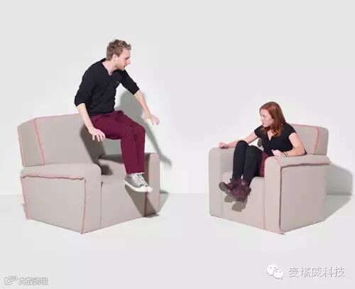 Voodoo 是由 Megan Elisabeth Dinius,Timothée Fuchs,Antoine Furstein 和 Bastien Girschig 设计的一对共振沙发,当坐在其中一个沙发上的人敲击、拍打沙发时,坐在另一个沙发上的人也能在同样的位置上感受到拍打。