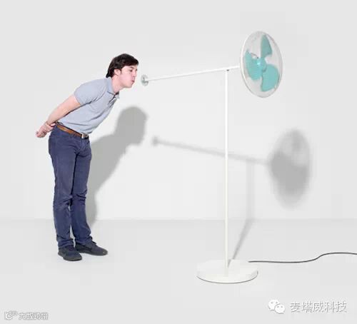 「吹风机(Windblower)」是一款名副其实的用嘴吹的风扇,两头一大一小各有一个风扇,用嘴吹动小风扇,可以带动另一侧的大风扇,让肺活量很小的人也很能吹。设计:Victor Férier,LudovicaGianoni,DanieleWalker。