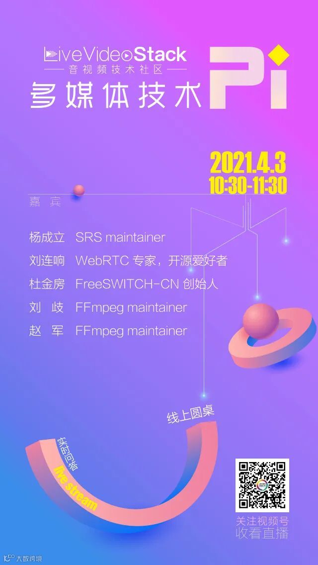 4月3日,LiveVideoStack 邀请以下五位开源爱好者&开源社区代码贡献者一起聊聊多媒体开源技术热点,以及因此带来的产品和商业机会。