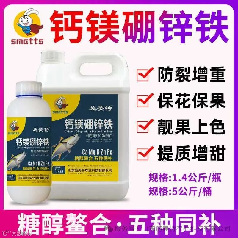 具体的使用量根据不同品牌的钙镁硼锌铁肥德有效成分与土壤缺肥状况相关,再根据不同农作物对于各种中量元素的需求量进行合理补充即可,切不能盲目使用。