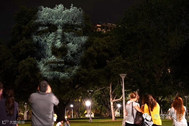 作为艺术节活动的一部分,《Emergence》被装置在悉尼海德公园中,黄昏,这些被投射在树冠上的人脸就会开始向观看者介绍这个公园曾经作为一个抗议者聚集地的历史。我想,听一棵“会说话”的树为你讲解历史一定比人讲来的有趣的多。