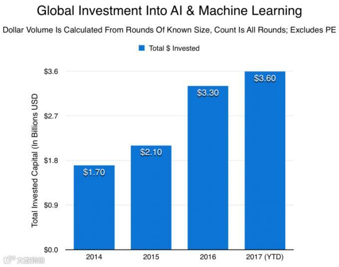 为了深入了解整体第二季度的风投表现,需世界各地的数据,但本文只针对美国的数据进行分析。据公司数据显示,截止目前,风险投资、企业和种子投资者今年已经向人工智能和机器学习公司投入了36亿美元。这一数字远远超过了他们在2016年的全部投入,创下了同期内有史以来最高的记录。