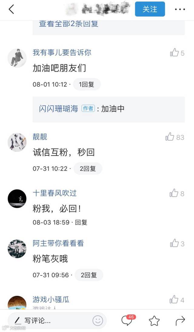 微博、微信兴起早期,都曾流行过互相关注。在没有任何基础的情况下,这不失为早期积累粉丝的一个选择。现在,在头条号上,也活跃着一批留言互粉的用户,架势不输于当年的微博。