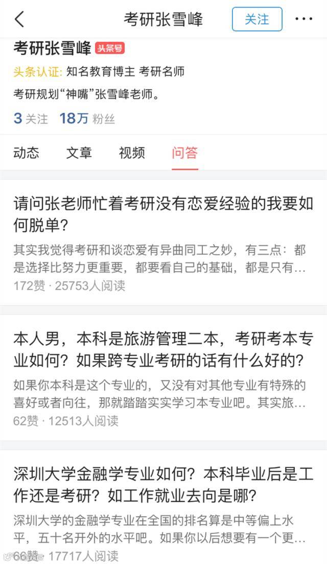 “考研张雪峰”的问答页面