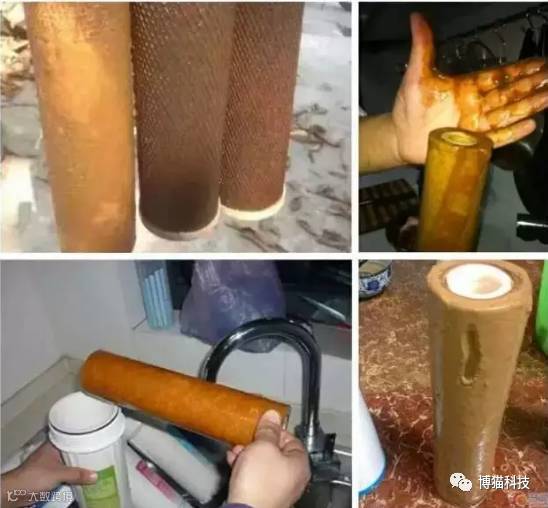 下面图片是几年都没换过的滤芯,以无过滤效果,危害物质依然被人喝进肚子,净水机基本如同废物,