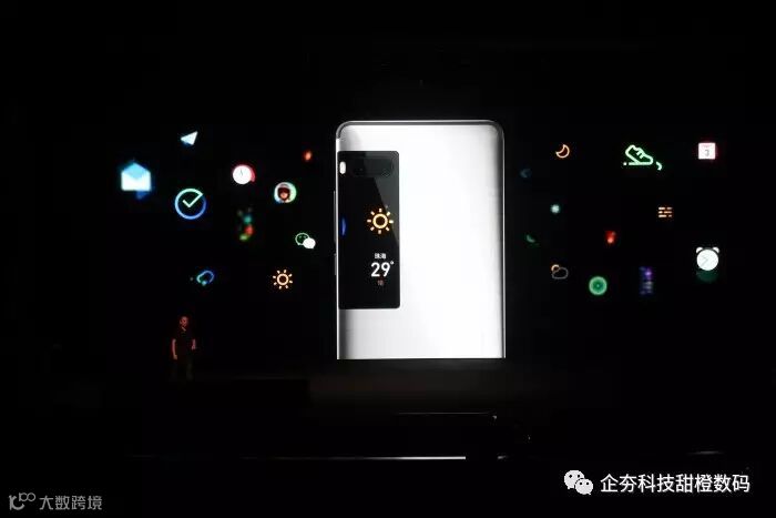 背面,魅族Pro7带来了全新的工业设计,创新性地加入了副屏,魅族官方则称之为画屏。不同过往的墨水屏,1.9 英寸的副屏采用的是 AMOLED 屏幕,能够实现天气、计步、通知/状态提醒、自拍和休眠MP3等多种功能。