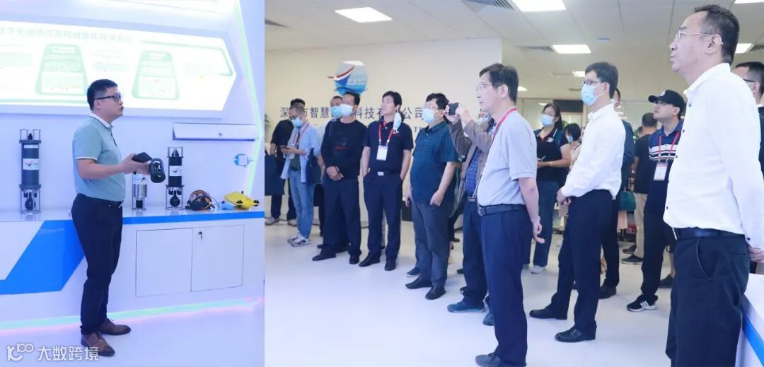 团先后参观了公司的展厅、演示区,CEO陈学思简要的介绍了公司的核心产品,目前公司产品主要包括水声通信机、水声通信网络系统、水声通信定位系统、智能潜标浮标系统等系列,并现场演示搭载了水声通信机的水下无线遥控机器人,可广泛应用于潜水安全装置、水下摄影、海钓休闲等领域。