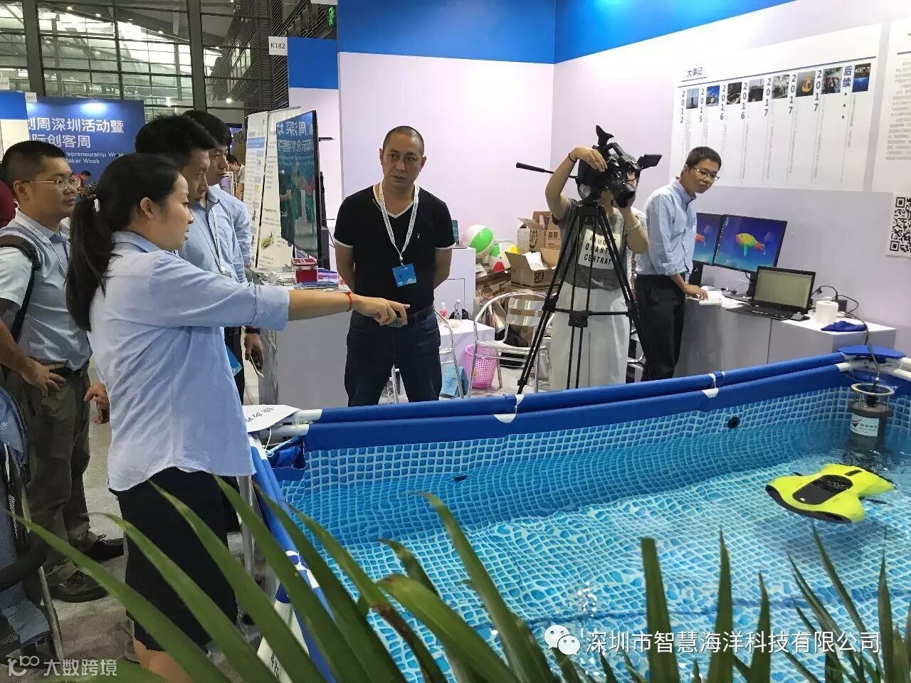 9月15日,2017年全国双创周深圳活动暨第三届深圳国际创客周在深圳会展中心正式启幕,全球优秀创业基地和企业齐聚这座“创客天堂”。其中,智慧海洋科技携自主创新的水声网络调制解调器,通过水声通信设备与水下机器人的互联互动,展示世界领先的水声通信和水下组网技术,引起大量观众围观,现场人气爆棚。