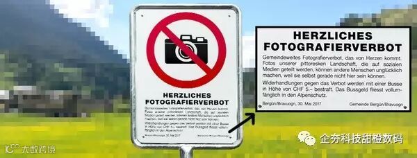 瑞士东部小镇Bergün日前公布了一项奇怪的新规:居然禁止游客拍照,违反者将罚款5瑞士法郎(约合人民币35元)。官方给出的理由更是让人大跌眼镜:这些流传在网上的照片实在太美了,只会让无法来到此地的人感到痛苦。