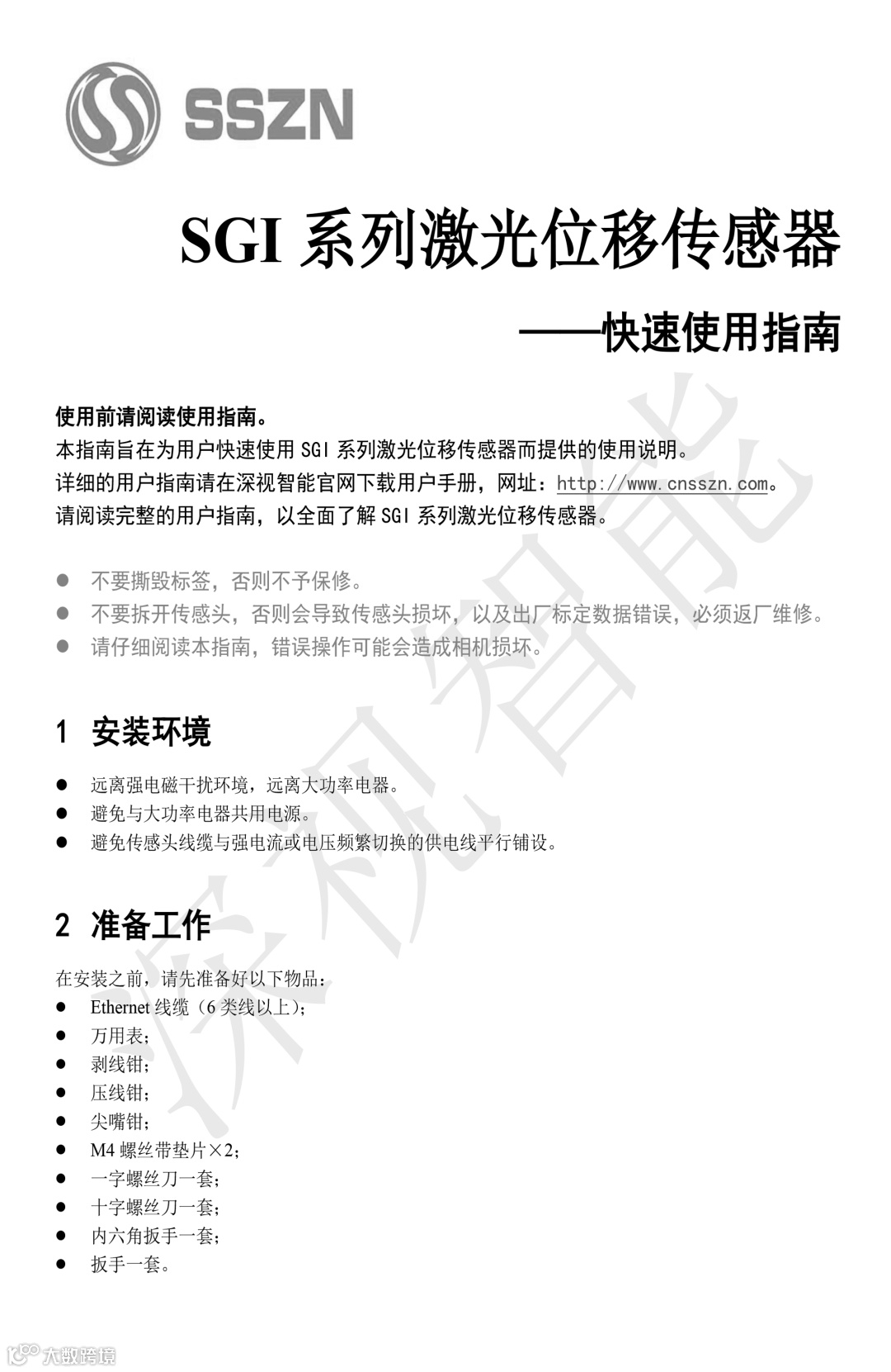 技术指南丨深视智能SG系列激光位移传感器硬件用户手册