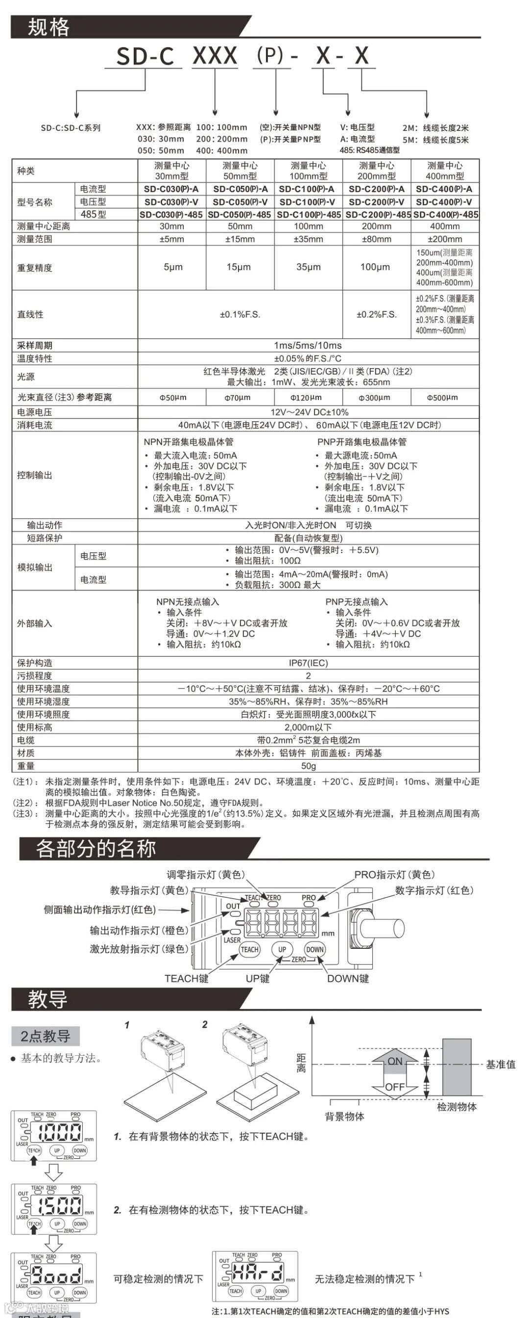技术指南 | 深视智能SD-C系列激光位移传感器使用说明书
