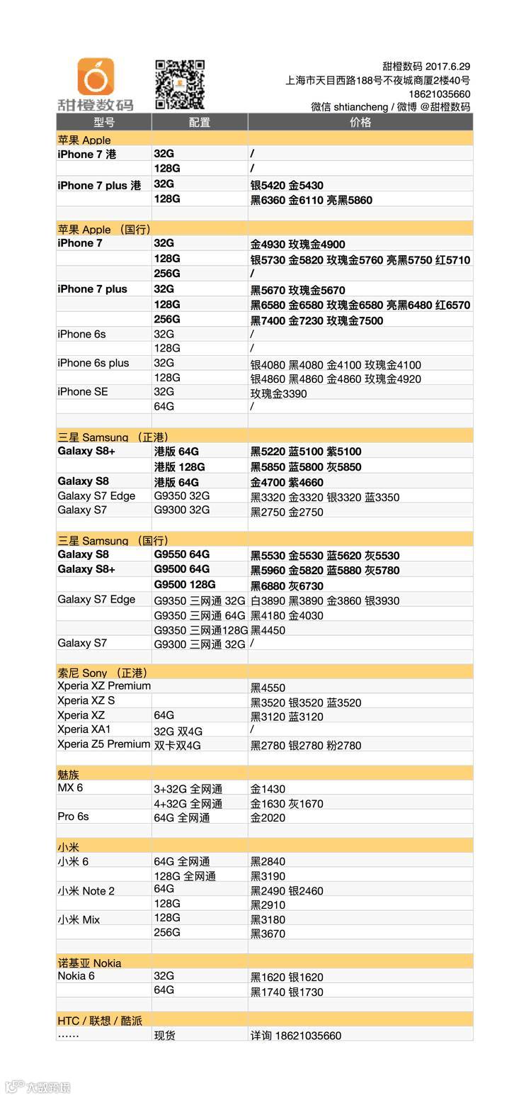 iPhone 7 及 plus 港版机型小幅反弹,而国行版稳定多日后也出现了明显的波动;三星 Galaxy S8/S8+ 价格走低,幅度在 50-100 元,Galaxy S7 Edge 受影响价格也有所降低;小米 6 和 Note 2 再走低 20 元。