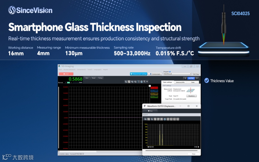 实时测量玻璃厚度,保证生产一致性与结构强度。