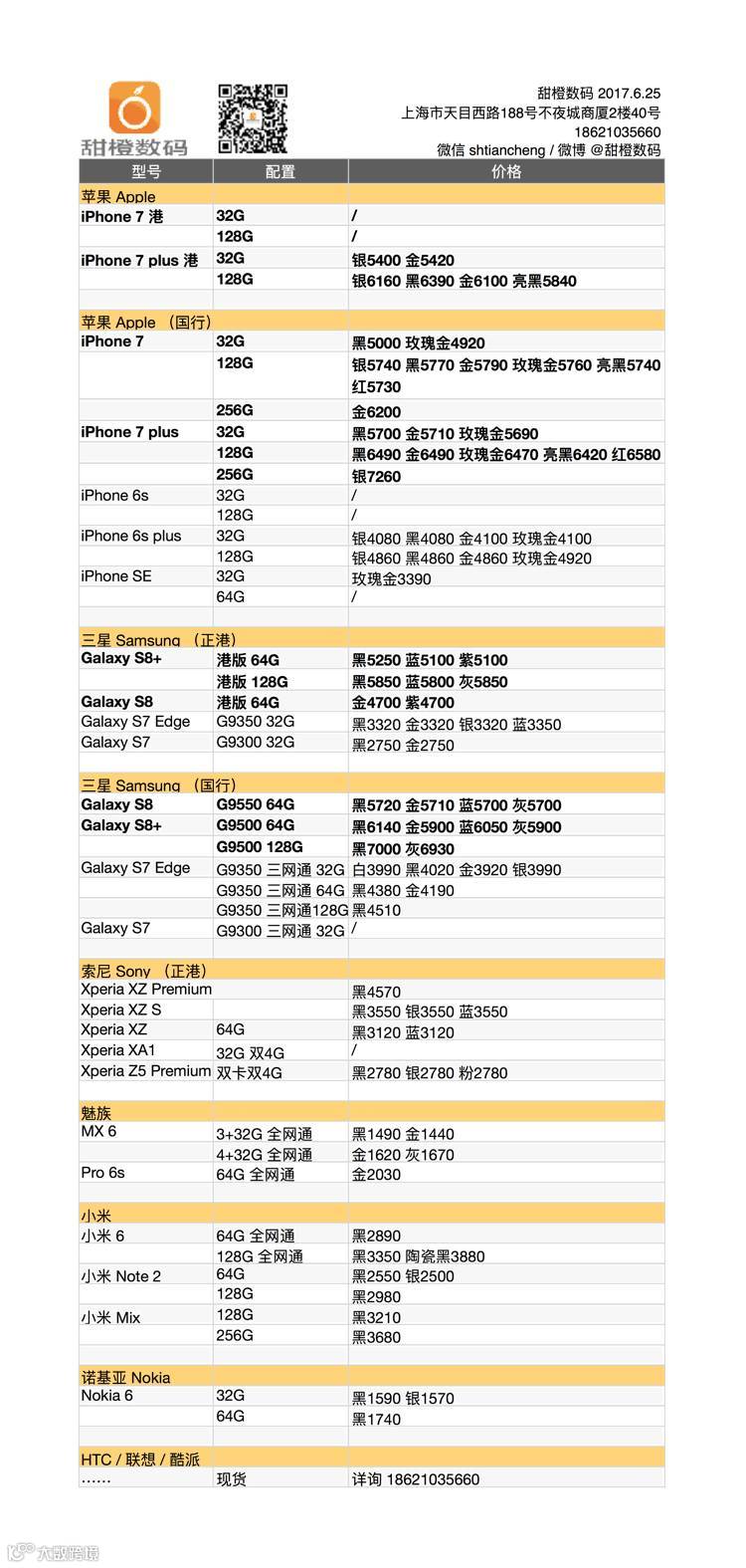 iPhone 7 及 plus 国行版周末销量不理想,价格小有走低,但供货却出现了部分缺口;三星 Galaxy S8/S8+ 国行版机型大幅走低 50 元,Galaxy S7 和 S7 Edge 也跟进走低;索尼隔空今日稳定。