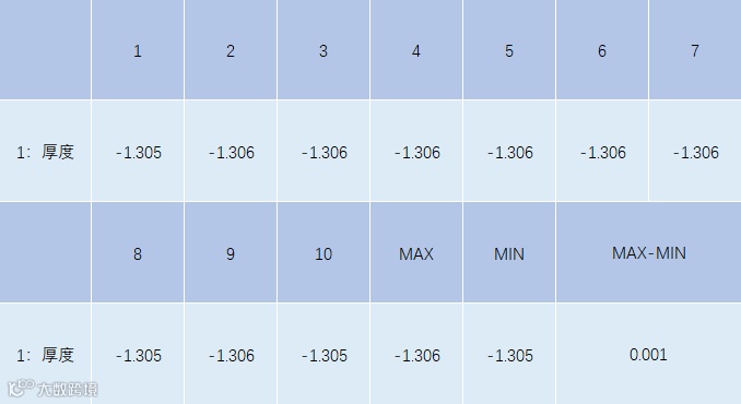 数据说明:使用SC10015进行10次动态测量,厚度重复性为0.001mm。