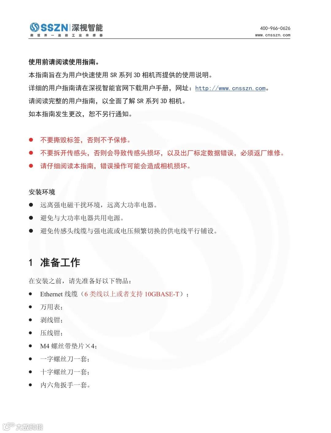 深视智能SR系列3D相机快速使用指南旨在协助用户更加全面地了解我们SR系列的线激光产品。为方便后续使用,您可在文末点击左下角阅读原文,以登陆深视智能官方网站注册下载更多资料。