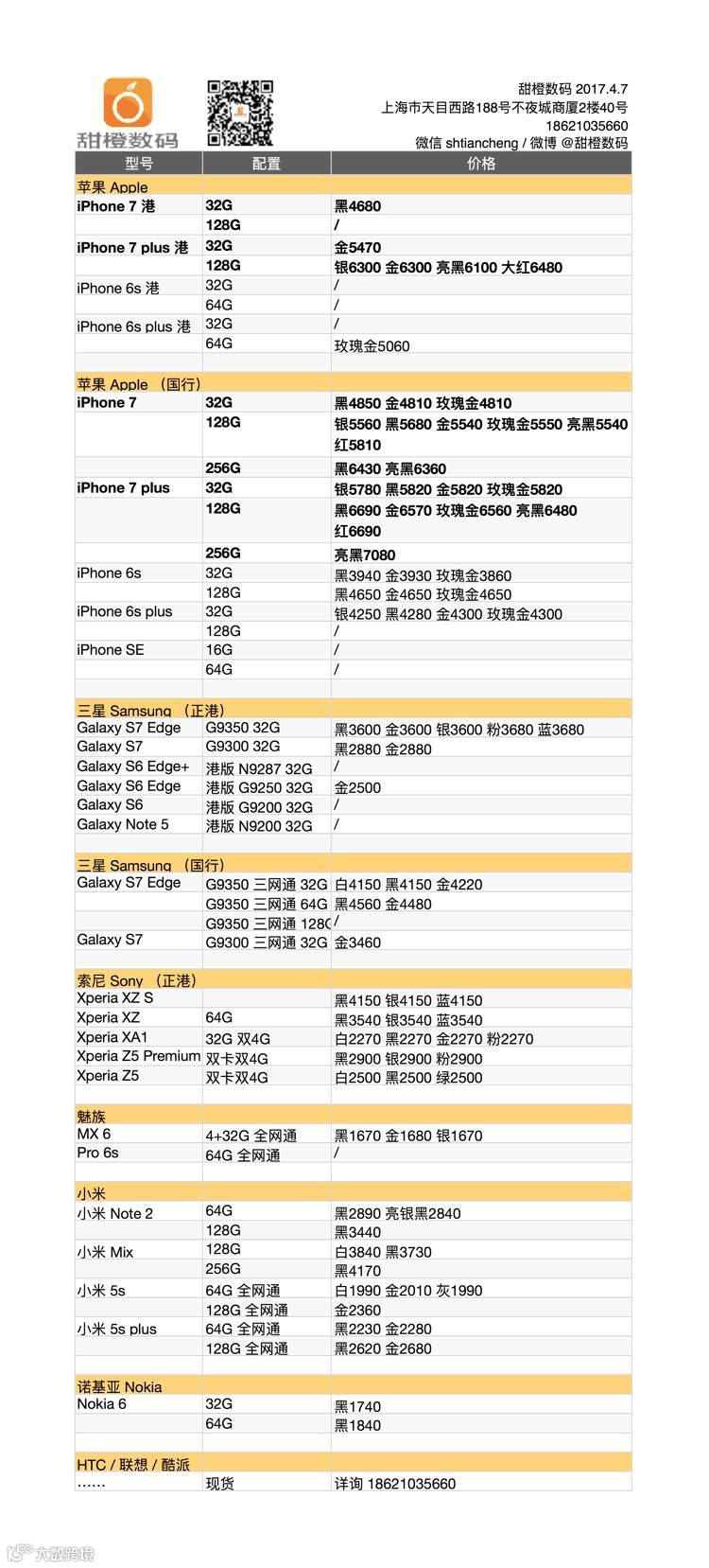 iPhone 7 及 plus 港版机型稳定,国行版突发大幅度反弹,索性大红色新款机型继续走低;索尼 Xperia XZ S 新机到店开售,Xperia XA1 双 4G 版走俏;三星 Galaxy 各款手机价格稳定。