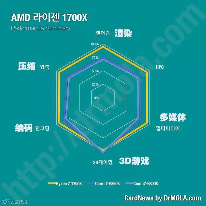 每家媒体的评测文章都是面向所有读者群体的,有高中也有小白,普通玩家要想从从海量的测试数据中找到对自己最有帮助的内容不容易,这也是我们做评测的人该反思的。韩国DrMola网站的Ryzen处理器评测做的很不错,他家的图表做的很漂亮,而且非常直观(就是语言障碍是个坎),值得学习。