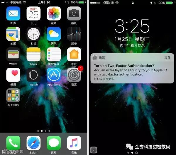 在设置应用中,新增加了用户安全版块,可以提供用户基本信息,同时也方便用户管理 Apple ID,还能显示此 ID 连接的苹果设备。从某种意义上看,全新的 Apple ID 功能是为了强制用户升级至双重认证机制,如果宣布不开启,会在设置应用上看到小红点,这简直就是逼死强迫症的节奏。如果不开启双重认证机制,锁屏界面下也会推送提醒。当然,为了安全性,大家还是进口开启双重认证机制吧。