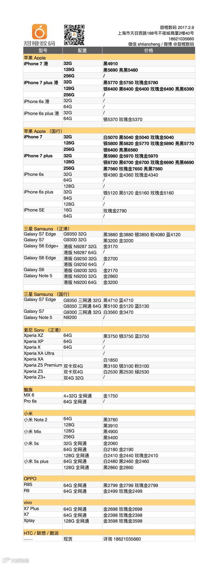 iPhone 7 及 plus 的港版机型今日再有走低,国行版也出现了小幅的松动;索尼各款机型比起节前有了明显的降价;小米 Note 2 及 MIX 两款旗舰机型也有小幅度走低。