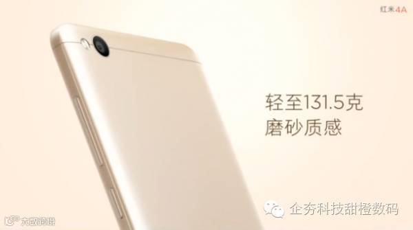 本周五晚上7时,小米公司CEO雷军和联合创始人林斌在小米直播与米粉见面,其中林斌在直播中首先为大家带来红米手机4,随后又推出一款入门级手机——红米4A。红米4A外观轻盈小巧,手机重量为131.5克,机身采用三段式金属设计,整机为磨砂质感。新机正面为一块5英寸720P显示屏,背部上下两端天线细如毛发,值得注意的是,主摄像头和闪关灯被顶端天线从穿过。红米A有金色和玫瑰金两种配色。