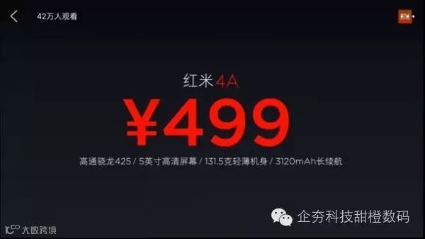 售价方面,红米4A定价499元,将于11月11日在小米天猫官方旗舰店首卖,即日起开始预售,消费者需预付49元定金。