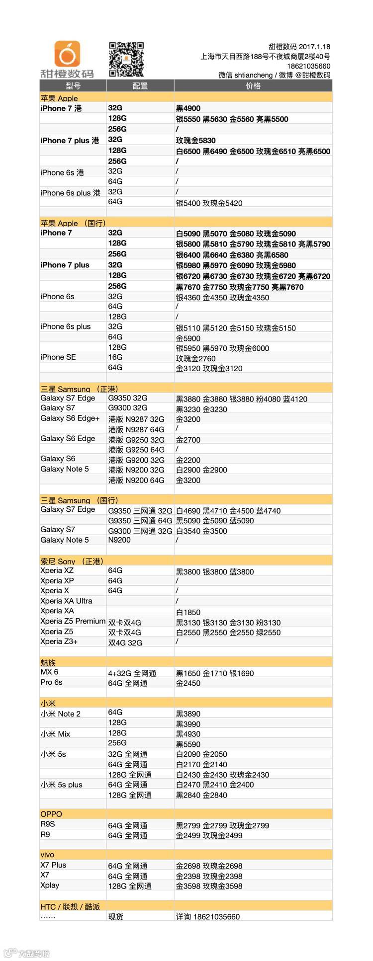 iPhone 7 及 plus 港版机型今日稳定,而随着春节的临近,价格的波动也是必然,今天国行版机型除 256G 外都有 1、20 元的小幅反弹;三星 Galaxy S7 系列国行版小幅走低;小米除 MIX 机型外都有降价。
