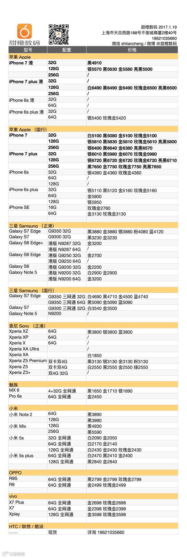iPhone 7 及 plus 港版机型供货开始减少,目前价格仍然处于低价位,国行版 iPhone 7 plus 也仍旧有小幅松动,但随着春节临近未来两天价格必有波动;安卓阵营各款手机目前稳定。